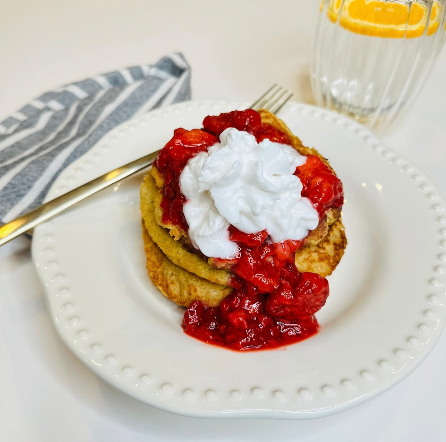 Serve: Serve your Strawberry Collagen Protein Pancakes with fresh strawberry syrup (recipe below) and a generous dollop of dairy-free whipped cream.